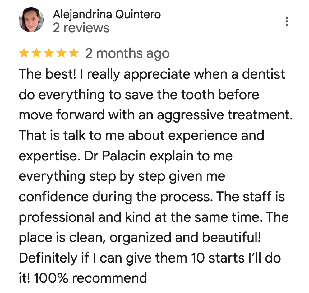 Doctor Palacinโs professional interests include advance dental restorative dentistry, implants, cosmetic dentistry, and orthodontics treatments. Dr. Palacin is known for her caring and ability to listen to each patientโs desires, and for involving each patient in the development of their own unique treatment plan. Dr. Palacin combines a passion for dentistry and a sincere interest in her patientโs health.